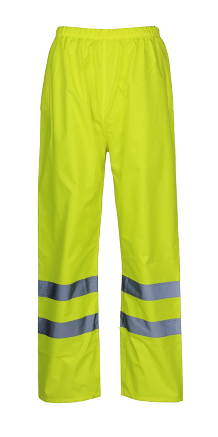Rain pant Hi Visibility with reflective tapes 5cm reflective tapes all seam taped and water proof with opening on the side for internal access .