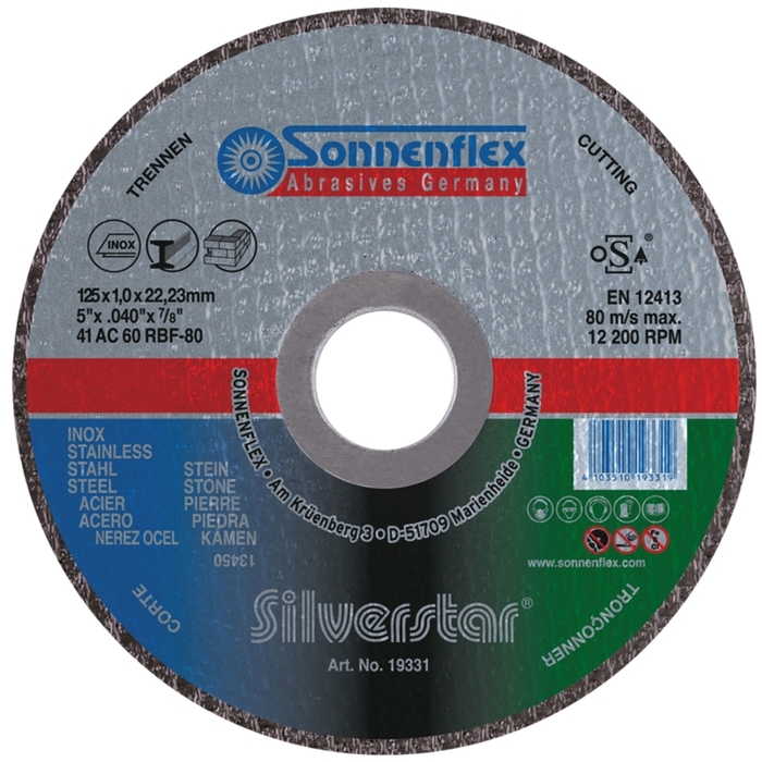 Cutting disc for stainless steel / stone silver star inox 125 x 1.0 x 22.23 mm / F41