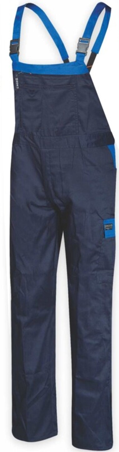 Bip pant colored with functional pockets on the side ,back and high on the thigh as well as a double pocket on the chest one open and one with a zipper.