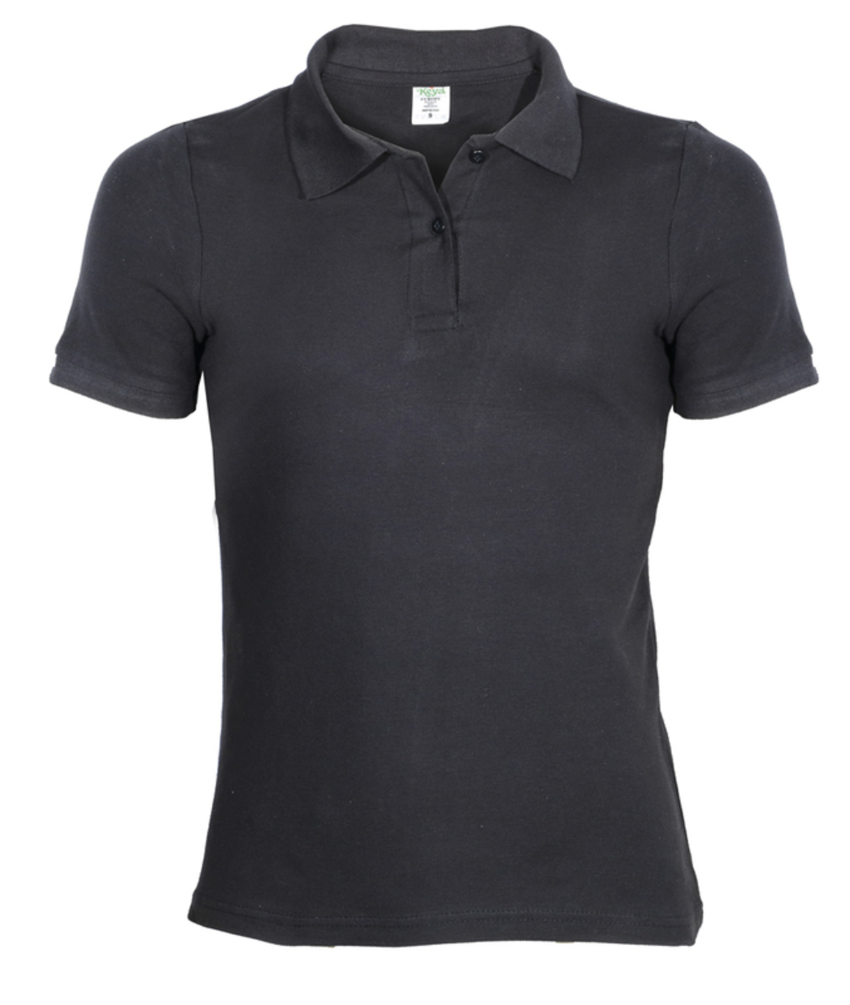 Women's short sleeve POLO with two buttons , ribbed on the cuffs and on the collar and side seams .