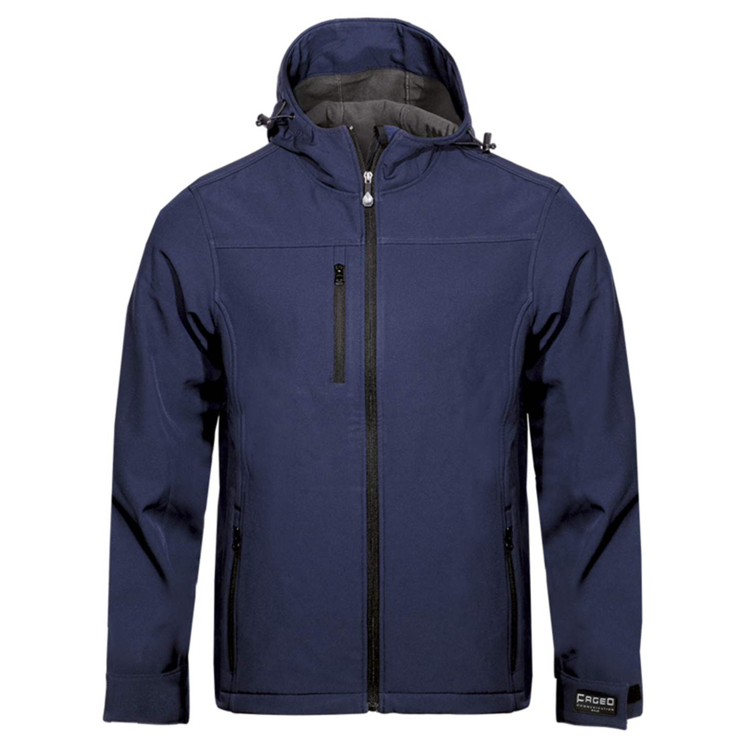Jacket Soft shell with microfleece inside , 3 zipper pockets , hood with 3 stoppers , velcro on the sleeves and on the upper part of the central zipper chin guard.