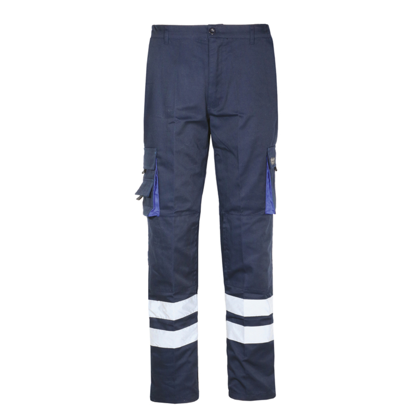 Working classic trouser with cargo pockets  on the side and back, 2 reflective tapes 5cm  , knee caps and latex on waist for a better fit .