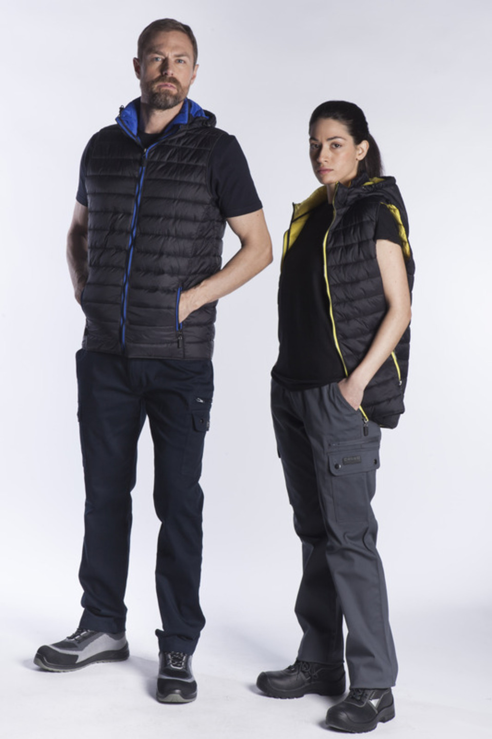Working trouser in a narrow line with a unique fit and comfort. Has 2 cargo pockets, a zippered pocket on the side and 2pockets back .