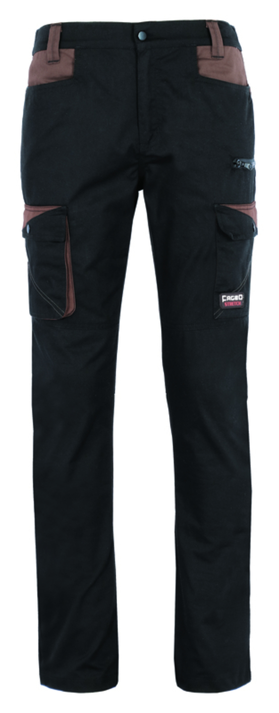 Working trouser in a narrow line with elasticity for a unique fit and comfort. Has 2 cargo pockets, one with zipper  and 2 back pockets back with flap .