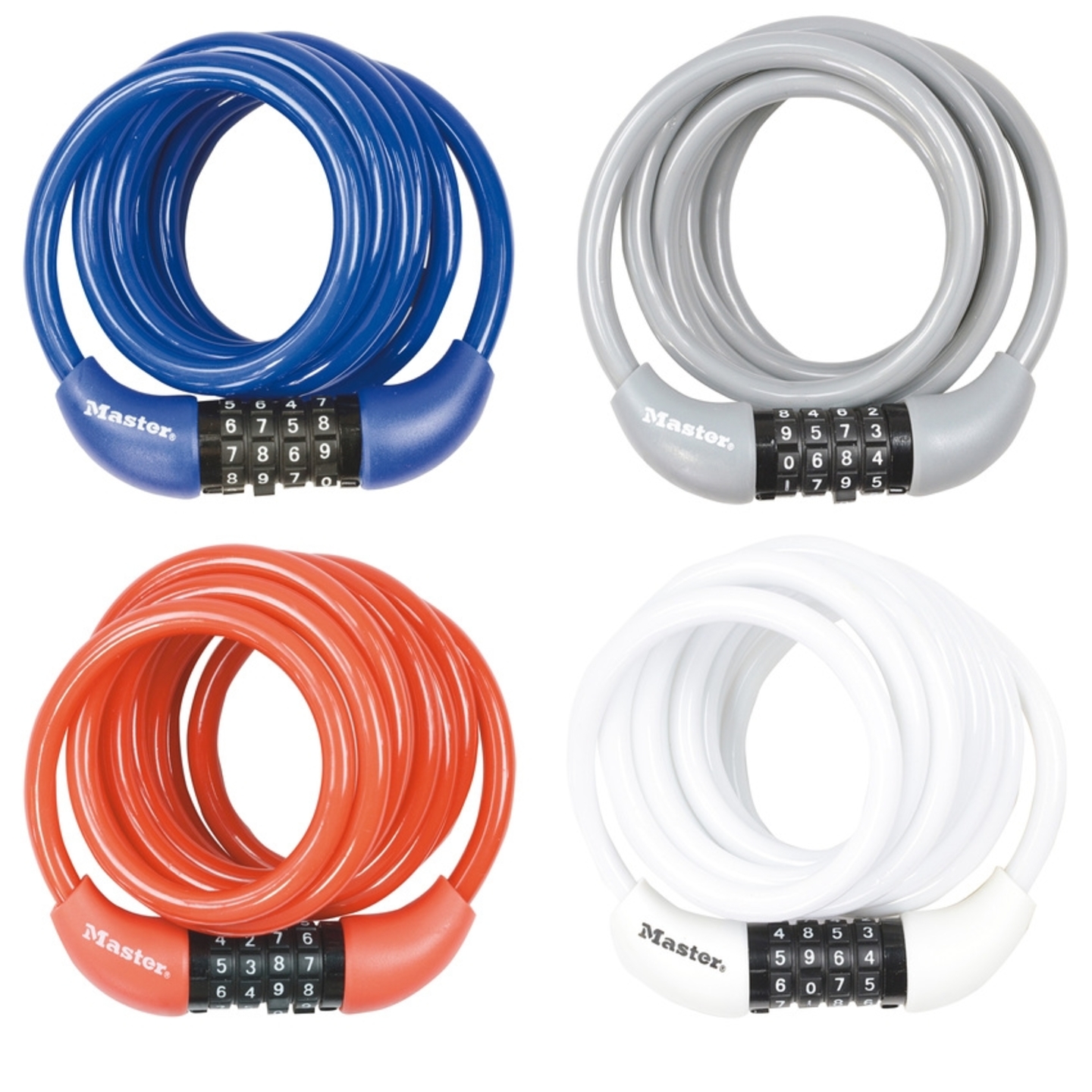Wire rope padlock 1.8m long and 8mm diameter in various colors, MASTER LOCK