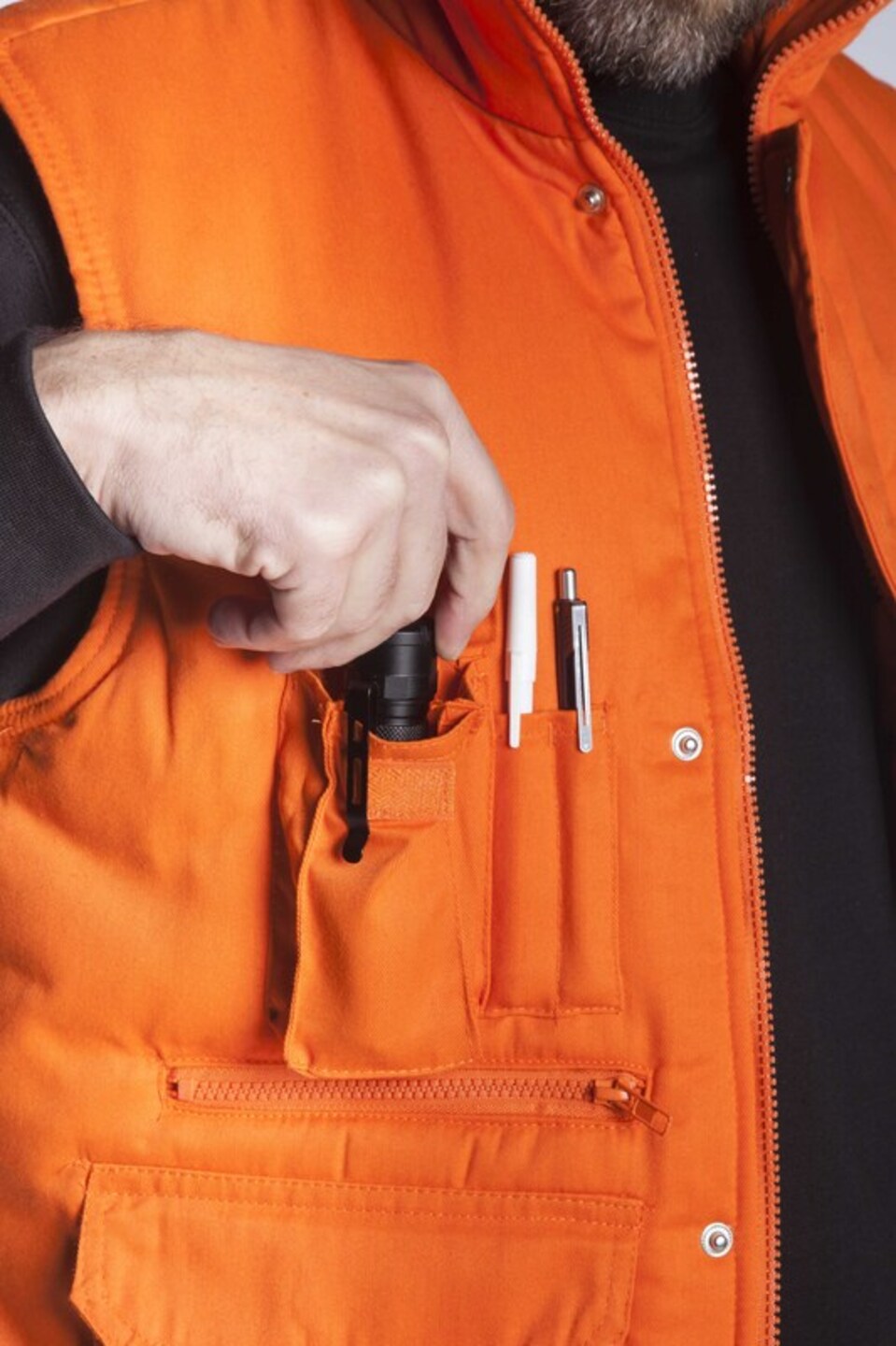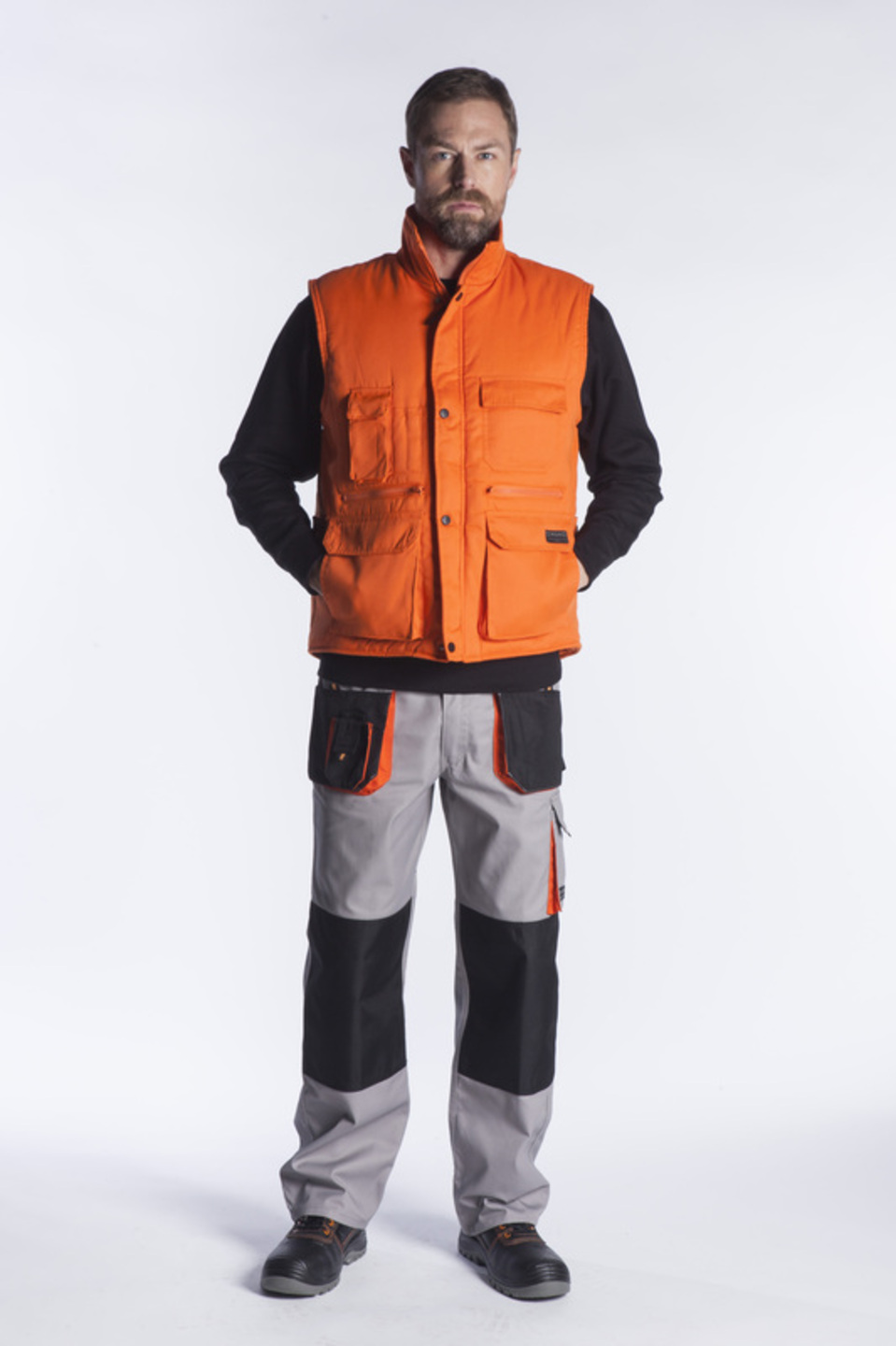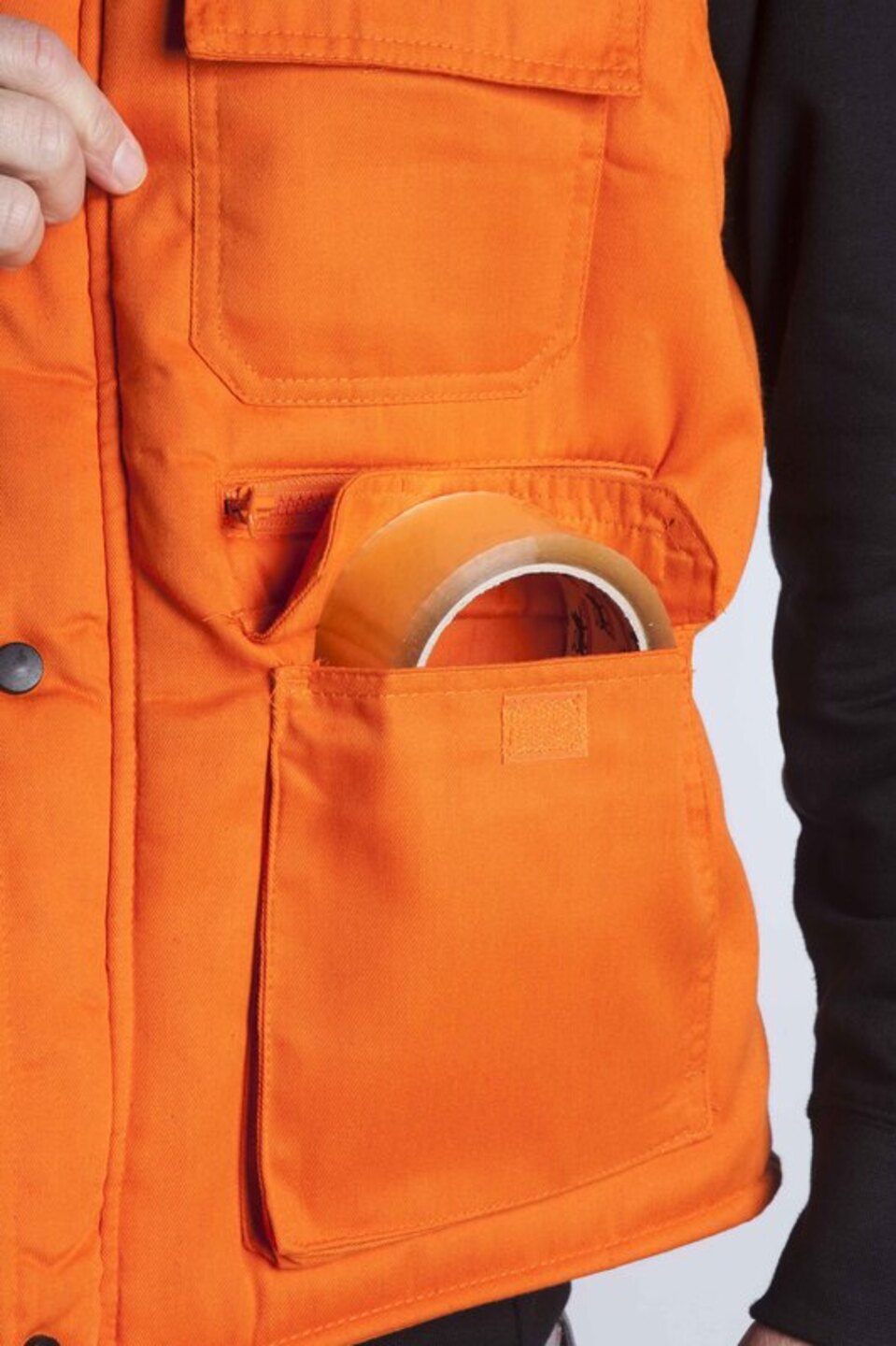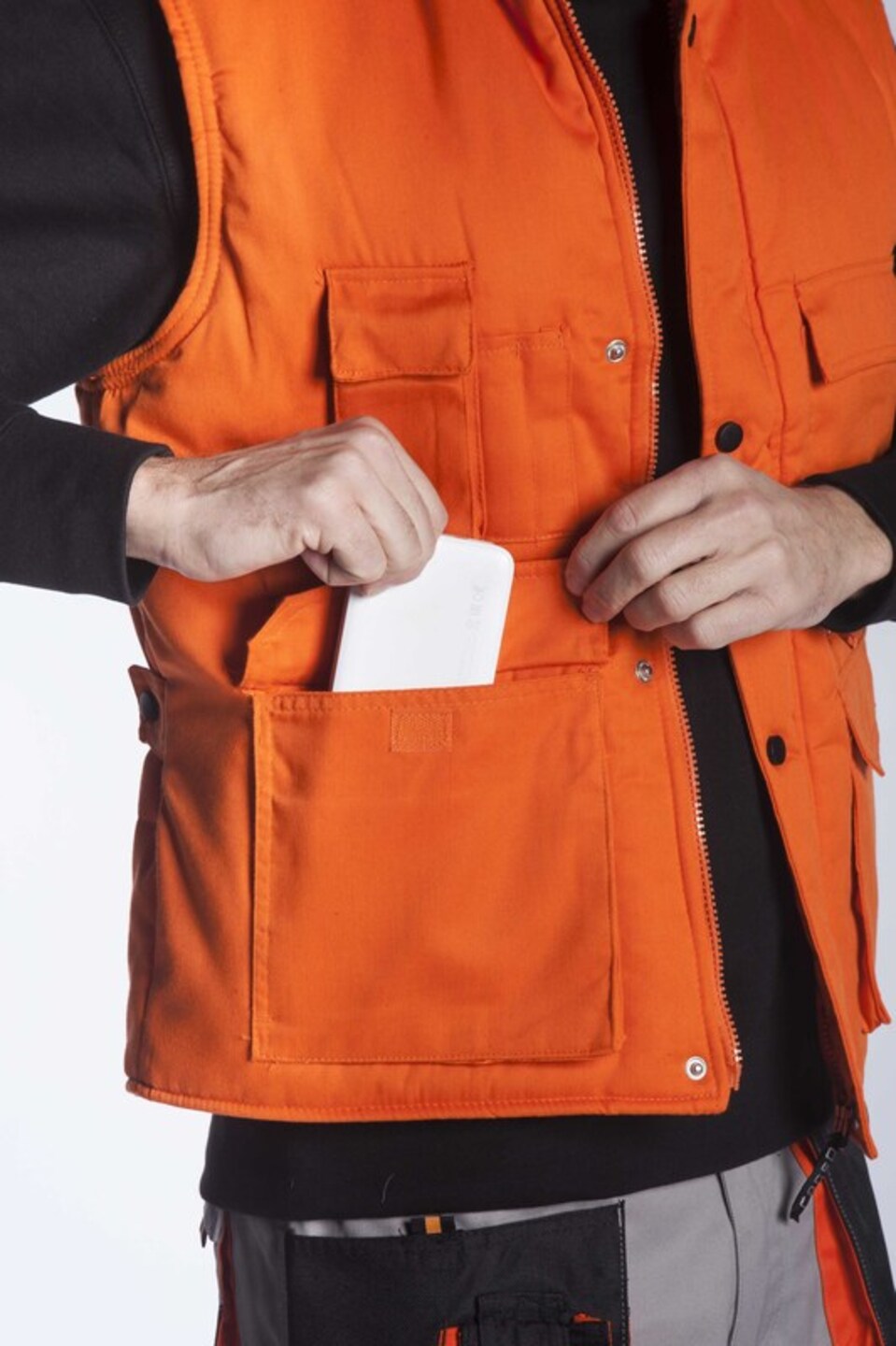 Γιλέκο υφασμάτινο με επένδυση και πολλές εργονομικές τσέπες. Μία άνω θήκη για κινητό και στυλό , μία άνω τσέπη βέλκρο , δύο τσέπες με φερμουάρ και δύο μεγάλες τσέπες κάτω βέλκρο. Λάστιχα στους ώμους για στεγανότητα από τον αέρα και μαύρα κουμπιά μπροστά για τέλεια εφαρμογή.