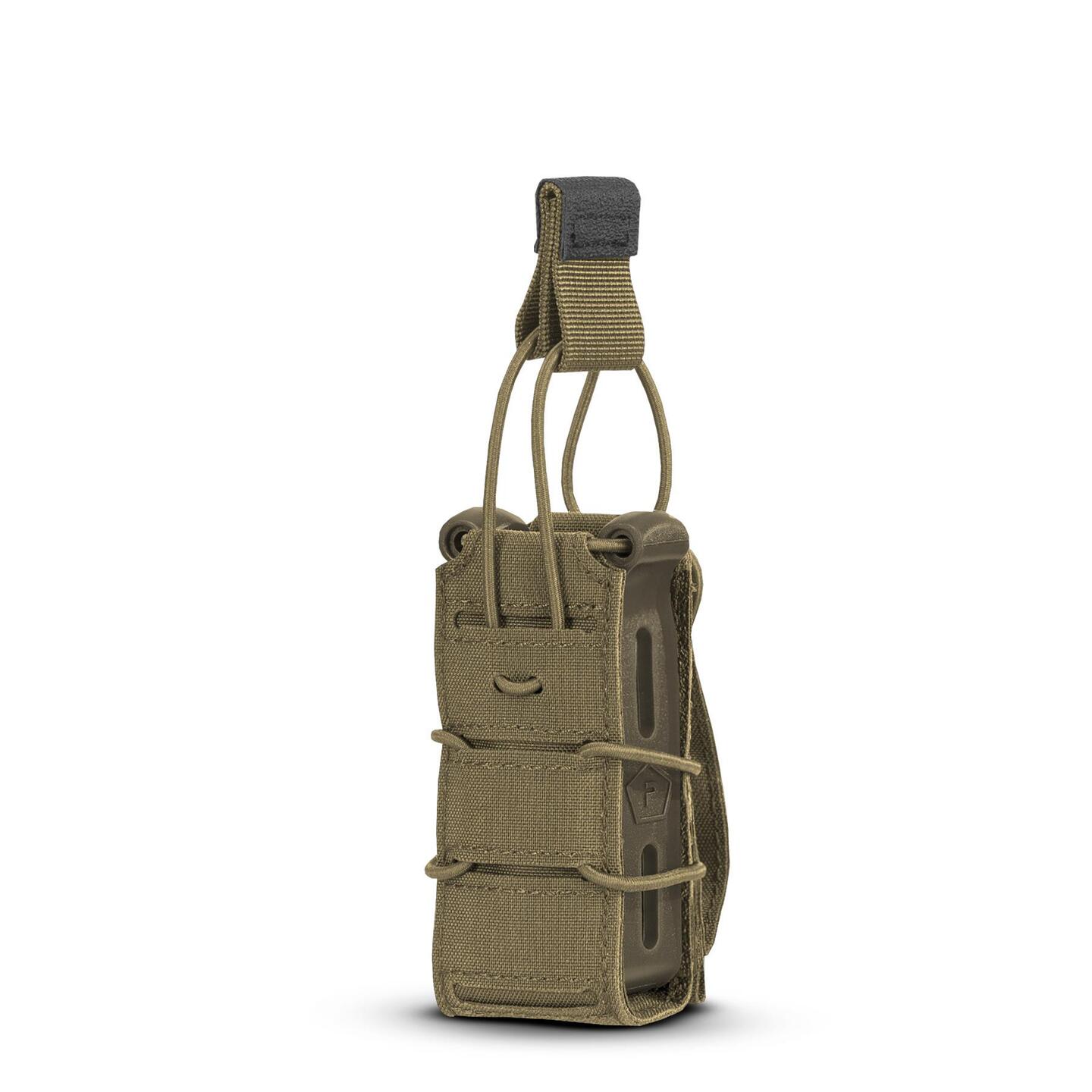 100% Nylon Lasercut 500D Cordura® ύφασμαΝάιλον Θερμοασφαλισμένο νήμαKydex πλαίσιο (Nylon PA) πάχους 3mm Συμβατή με σύστημα MOLLE / PALSΕνσωματωμένο αντιολισθητικό ύφασμα για τη συγκράτηση των γεμιστήρωνΡυθμιζόμενο με ελαστικό κορδόνι Bungee 4mmΤαχείας ανάπτυξης Bungee για γεμιστήρεςΣυμβατό με γεμιστήρες πιστολιώνWxHxD 4.5 x 9.5 x 2.5cm
