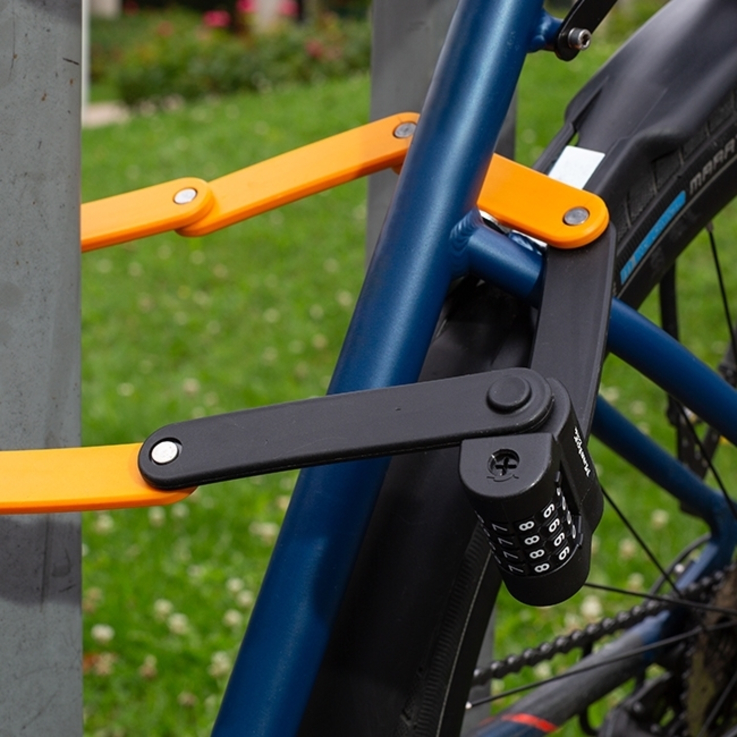 Αναδιπλούμενη κλειδαριά ποδηλάτου με συνδυασμό 4 ψηφιών.