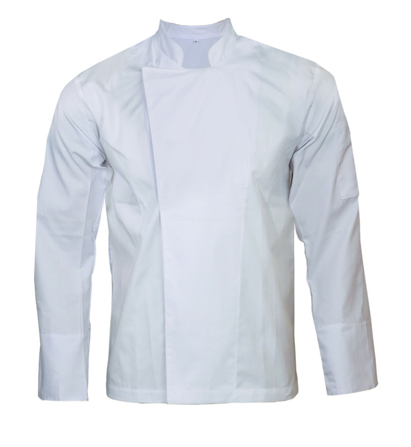 Σακάκι chef μακρυμάνικο ,  με κρυφά κουμπιά-τρουκ,στέπη για στυλό στο μανίκι και διαπνέον δίχτυ στην πλάτη .